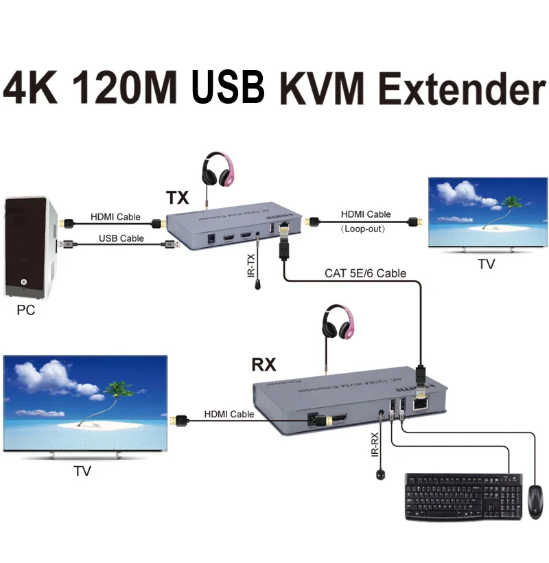 4K 120M KVM HDMI Extender par RJ45 Ethernet Cat5e Cat6 câble convertisseur TX RX Support USB souris clavier Extension écran tactile.