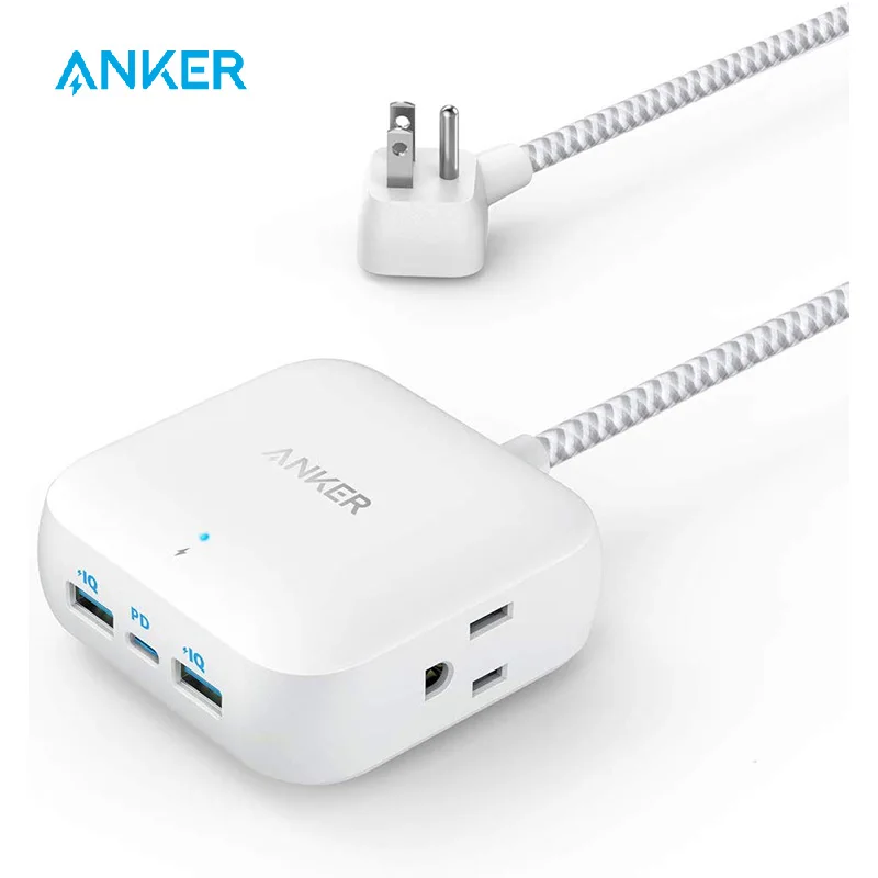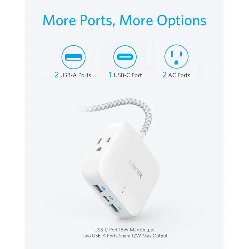 Anker multiprise avec USB C multiprise de voyage d'alimentation multiprise 30W PowerPort Strip PD 2 Mini avec 2 prises et 3 USB (18W USB C)