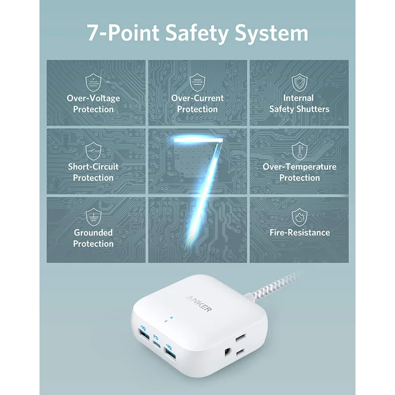 Anker multiprise avec USB C multiprise de voyage d'alimentation multiprise 30W PowerPort Strip PD 2 Mini avec 2 prises et 3 USB (18W USB C).