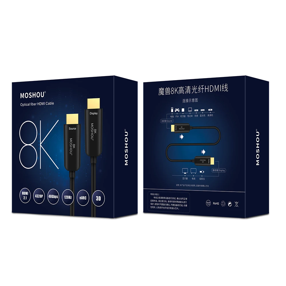Câble MOSHOU HDMI 2.1 câble ultra-hd (UHD) 8K 120GHz 48Gbs avec cordon Audio et Ethernet HDMI câble HDR 4:4:4 sans perte