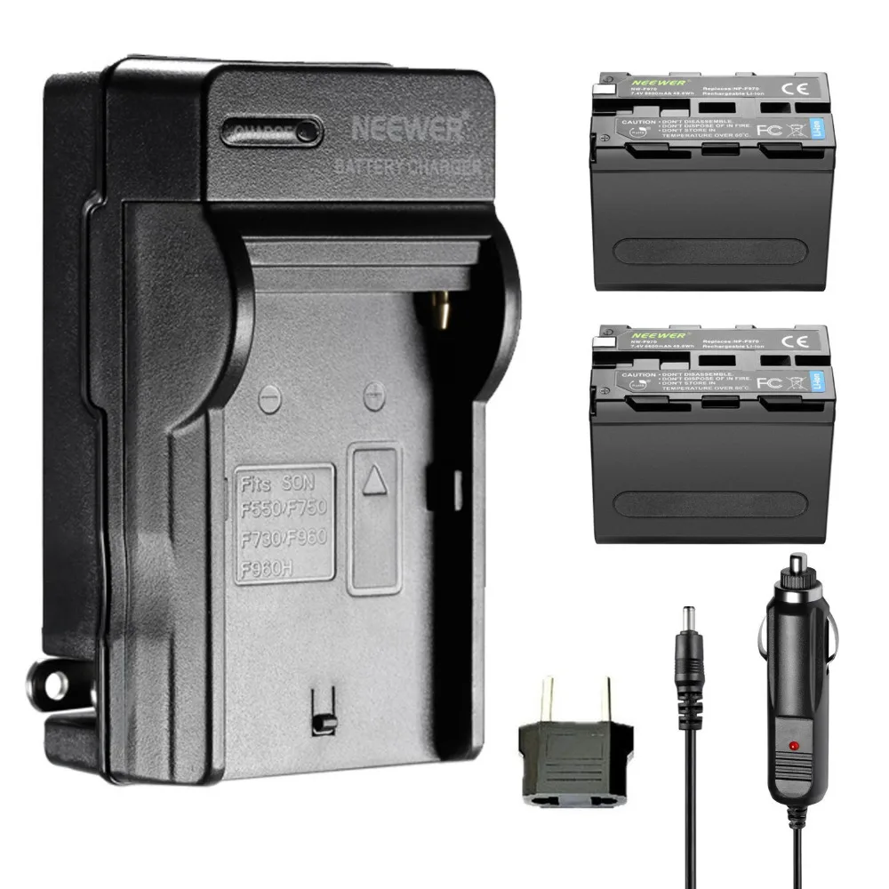 Neewer 2 pièces 6600mAh batterie de remplacement pour Sony NP-F970 batterie Li-ion et et adaptateur ue pour LED lampes vidéo ou moniteurs