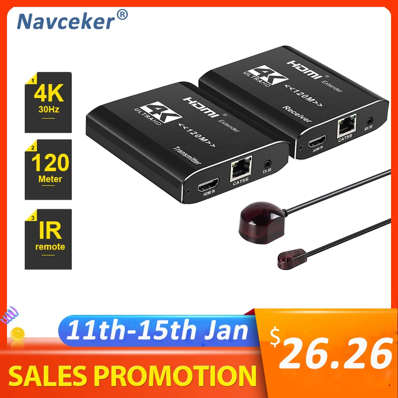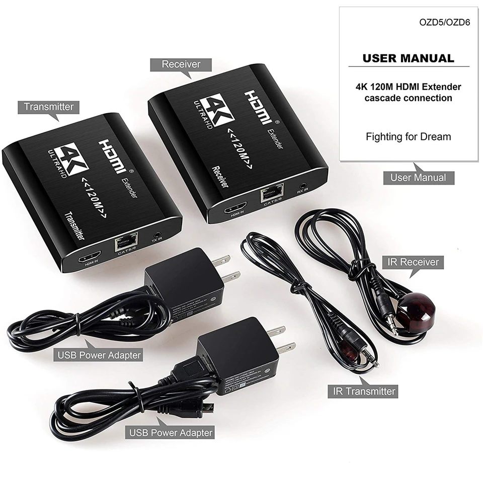 2020 4K HDMI Extender IR 120m HDMI Extender RJ45 3D HDMI Extender émetteur récepteur sur Cat5e/Cat6 câble pour PS4 Apple TV